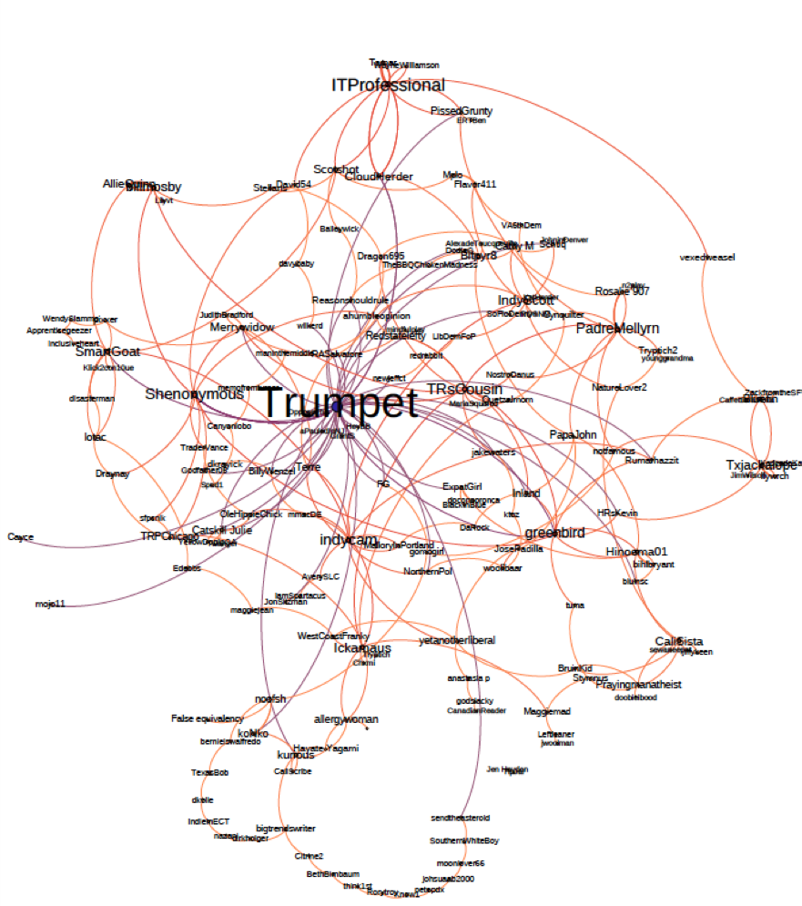 En el ejemplo del usuario «Trumpet» queda muy patente este hecho. Prácticamente ningún comentario le es ajeno y la mayoría de las conversaciones pasan de alguna manera por él.